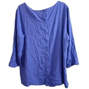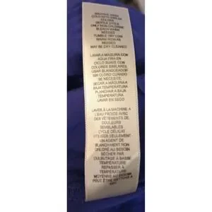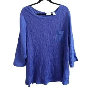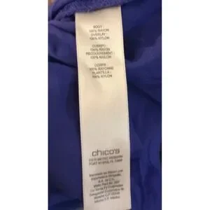 This Chico's blouse features a feminine and romantic design with a lace overlay on the front and button up back. The purple color adds a touch of elegance, while the rayon material provides a comfortable fit. Perfect for a stylish and chic look, this blouse in size XL is a versatile piece that can be dressed up or down for various occasions. This blouse exudes a romantic and sophisticated charm that is sure to make a statement.