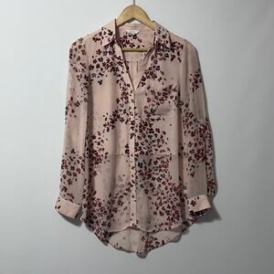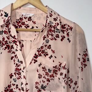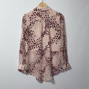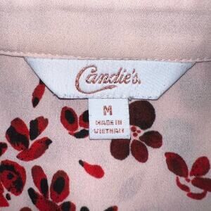 Candie’s Sheer Pink Floral Button-Down Blouse – Size M