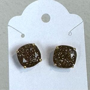 Kate Spade Gold Tone Brown Glitter Stud Earrings