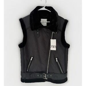 Brand new stunning vest! I ship next day! Oversized, Edgy, warm, and on-trend. This ZARA faux leather moto vest features plush black faux-shearling lining and trim, an asymmetrical zip front, and a belted hem. Perfect for fall and winter layering — looks amazing over sweaters, turtlenecks, and long sleeves.