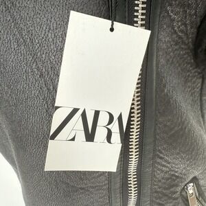 ZARA NWT Moto Jacket Black Size S Belted Biker Vest Goth Fur Oversized Emo Punk
