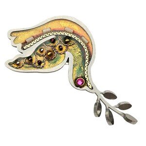 Seeka Dove Brooch, Pink Eye, Yellow Green Pin C558