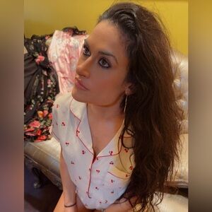 🍒🍒Short Sleeve and Shorts Cherry Print Pajama Lounge wear Set Collared & Pocket