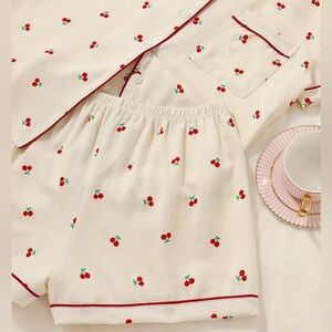 🍒🍒 Cherry Pajama Short Sleeve and Shorts Print Lounge wear Set Collared & Cuffed
