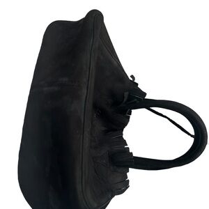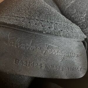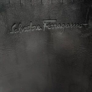 This cute little suede Ferragamo is in great condition with minor wear. There is no discoloration or damage. It comes with a separate pouch to secure important items while providing easy access. The suede interior is clean and in excellent condition.