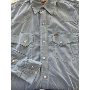 The Rafter C Cowboy Collection Pro Flex 45 Men's Small White Blue Check Pearl Snap shirt is a stylish and versatile addition to any man's wardrobe. This button-up shirt features a classic collared neckline, snap closure, and distinctive blue check pattern. With a cowboy theme, it is perfect for all seasons and can be dressed up or down for any occasion. Made by the brand Rafter C, this shirt also includes convenient pockets and is designed for a comfortable fit.