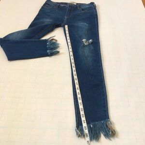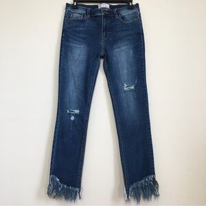 Free People Mid Rise Raw Frayed Fringe Hem Dark Wash Fringe Ankle Skinny Jeans