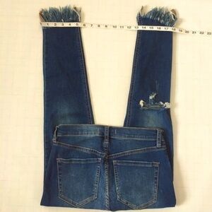 Free People Mid Rise Great Heights Raw Frayed Hem Dark Wash Blue Denim Distressed Ankle Skinny Jeans