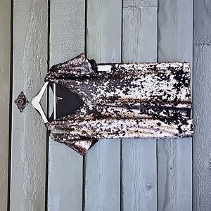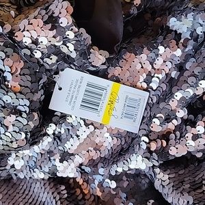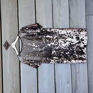 Like moonlight dancing on calm waters, the shimmering sequins of this polished black minidress subtly glisten and shine with moody glamour.