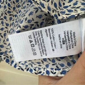 Charming blue patterned shirt. Features a button-down design. Perfect for casual or formal wear. Liberty print blue and white floral. Measures 19.5” UA to UA, 26” length