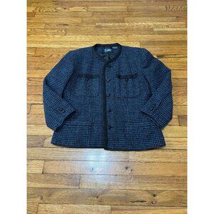 Liz Claiborne Lizwear Womens Blazer Jacket Sz 12 Blue Black Wool Blend Tweed Vintage. Great pre owned condition! Little to no wear!