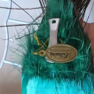 This ornament is so much fun with beautiful blue tones and sparkling feathers!