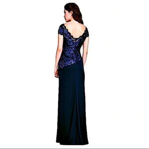 Tadashi Shoji Alvaro Sequin Embroidered Floral Lace Crepe Evening Gown Size 8