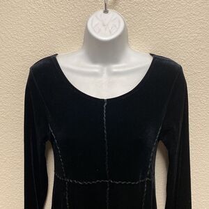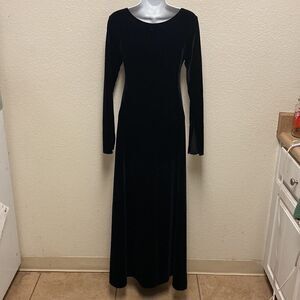Black long sleeve velvet maxi dress from Cykxtees. Split cuff. Size medium.