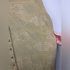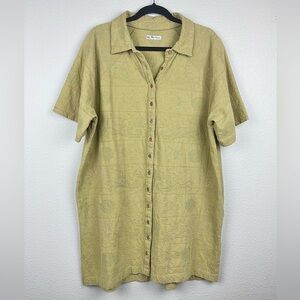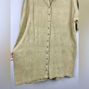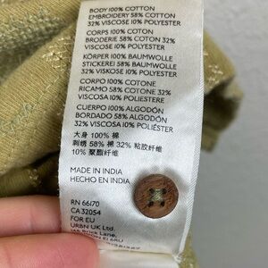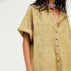 FREE PEOPLE Women's XS Yin To My Yang Tunic Top Button Down Shirt Dress Tan Embroidered Beach Collared