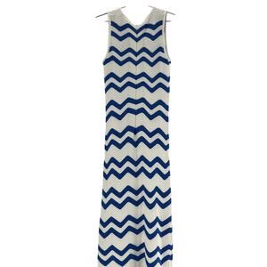 Hyacinth House Zig-Zag Stripe Blue Cotton Mykonos Knit Maxi Dress Size S