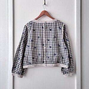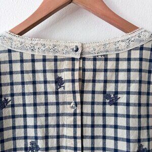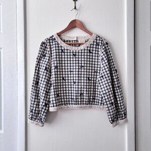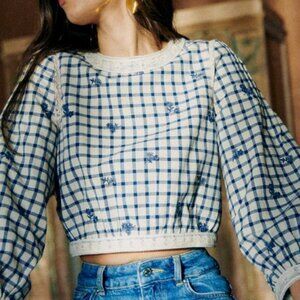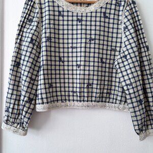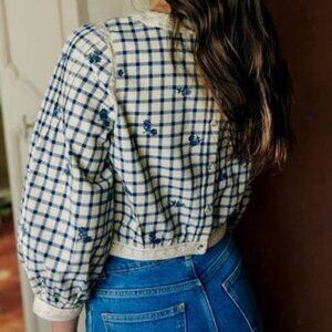 Sezane Thalyna Blouse Blue Floral Embroidery on Vichy Fabric