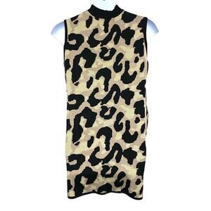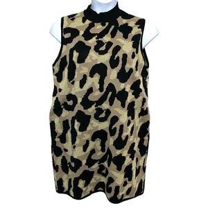 Planet Gold Plus Glitter Leopard Print Sweater Dress 2X Mob Wife Neutral Casual