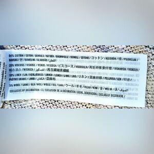 > FABRIC: 64% Cotton, 23% Viscose, 10% Linen, and 3% Wool.