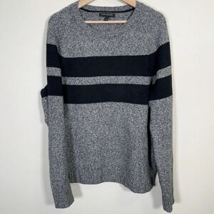 WHAT: This is a cotton sweater features two black stripes. Ribbed at collar, cuff and hem