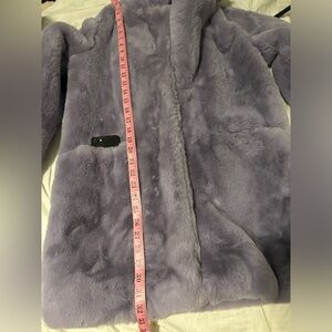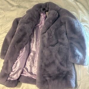 Chic lilac faux fur coat. Perfect for adding elegance.