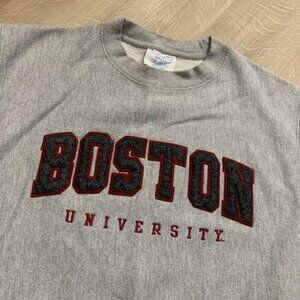 Champion Reverse Weave Boston University Crewneck Sweatshirt Men's Small S Gray Terriers Pullover Heavyweight Chenille Embroidered