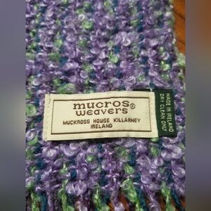 Gorgeous handwoven wool scarf in dreamy shades of lavender, green, and teal. Made at the historic Muckross House Weaving Workshop in Killarney, Ireland — known for traditional craftsmanship and high-quality natural fibers. If you love unique artisan pieces or Irish-made goods, this is a must-have.