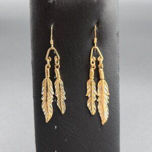 Gold Over Sterling Silver Double Feather Dangle Earrings A6433