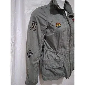 Ashley Jacket Womens M Olive Green Utility Collection Military Full Zip Patches