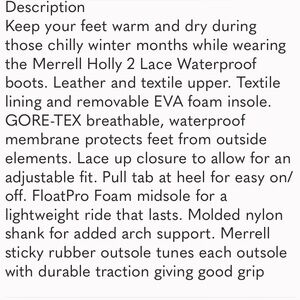 Merrell Black Holly 2 Lace Up Waterproof Boots Size 8.5.