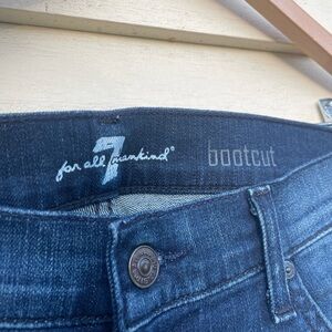 Like-new condition 7 For All Mankind jeans, vintage designer look, light whiskering, has stretch. Love the embroidery on the back pockets of 7s. Classic brand tab on back. Flattering. Mid-high rise. Very comfortable, great length. Size 32, check my measurements as these seem to run big.