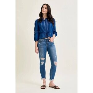 Urban Outfitters One Piece Swimsuit Blue Floral Print Tie Shoulder Size L
