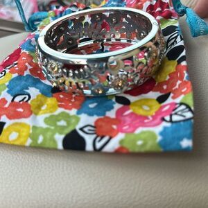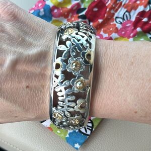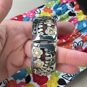 BRIGHTON Flowers on Fence Cutout Crystal Wide Bracelet + Pouch