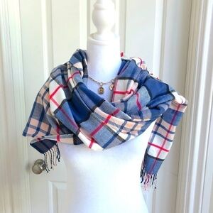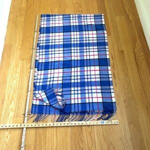 Lord & Taylor Plaid Scarf Red White & Blue Fringe