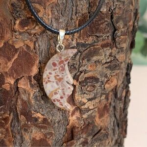 carved stone half moon pendant necklace fossils crystal healing pendants chakra stone reiki metaphysical jewelry unisex moon