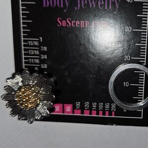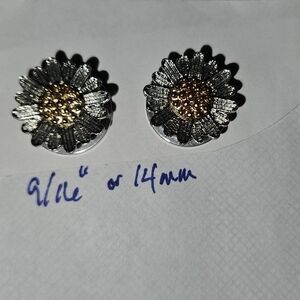 Elegant gold and silver flower plug earrings perfect for any occasion. Add a touch of sophistication to your look. screw on back, 9/16" or 14mm