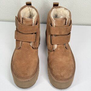 UGG Neumel Platform Chukka Boots Suede Strap Chestnut Tan Plush Lined Size 8
