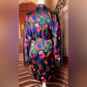 NWT Victoria's Secret Moonlight Tropic Multicolor Floral Satin lace Robe belted