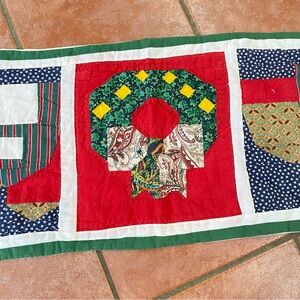 Christmas Patchwork Quilted Table Runner Dresser Scarf Holiday Handmade Festive