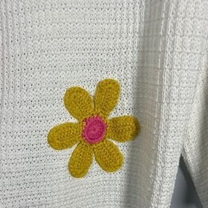 Coco + Carmen Women's White Colorful Floral Knit Bell Sleeve Sweater Size S/M