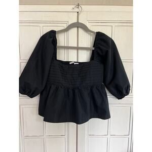 New with tags Mi Ami size medium black top. Puff sleeve. Elastic around the shoulders and cuffs. Measures 16” from armpit to armpit. Smocking in the back so has some stretch. It is 19” long from shoulder to bottom hem.