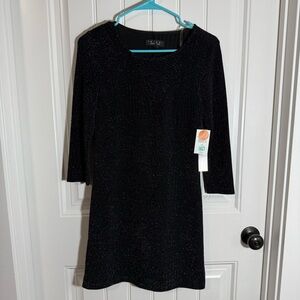 Shine in this elegant black glitter dress, perfect for any occasion. Its sleek design offers a flattering fit, making it a must-have in your wardrobe.