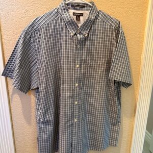 Eddie Bauer Navy and White Plaid Button Down Shirt