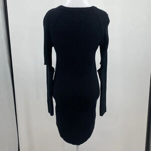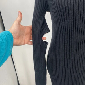 Monrow Elbow Slash Sweater Dress Womens Size Small Black Wool Cotton Ribbed Knit