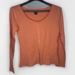 NWT Gap Large Pointelle Button Front T Shirt Orange Peach Long Sleeve tee top