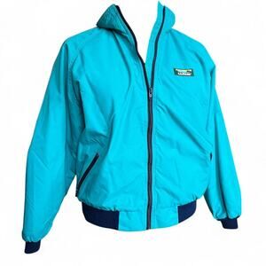 LL Bean Women’s Vintage 80s Teal Three Seasons Jacket With Navy Blue Fleece Lining