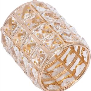 Elegant gold and crystal makeup brush holders. Perfect for adding a touch of luxury to any space.