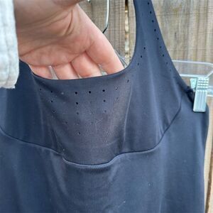 It's all in the details with this sleek activewear dress, from the chic halter styling to the cool perforated accents. Shapely seaming and interior shorties finish the design.