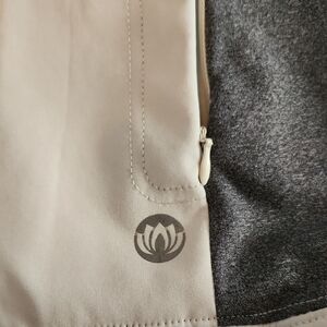 Chic and functional ski jacket by Mondetta. Features a cream body with grat accents. Ideal for winter sports.