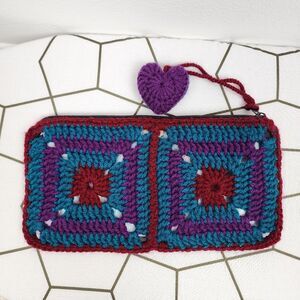 New Handcrafted Crochet Clutch Case Granny Heart Crochet Charm Teal Purple Burgu